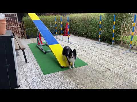 Auf seiner vertrauten Terrasse war Lasse da viel selbstbewusster und entspannter. Und wie viele Facebook-User sich mit ihren diversen Spielen in der Krise beschäftigten, starteten die Shelties ihre ganz persönliche Wippen-Challenge - plötzlich war die Wippe vom "Wir suchen mal den Kipppunkt" zum "Juchhu, da ist die Wippe" geworden. Da wir ja unendlich viel Zeit hatten und jeden Tag ein wenig trainieren konnten, steigerten sich die Herausforderungen nur sehr langsam - eine Trainingspolitik der kleinen Schritte, die sich - wie am Ende dieses Posts zeigen wird - auszahlte.